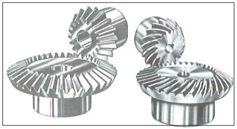 베벨 기어는 두 기어의 회전축을 교차해 놓은 형상을 가리킨다. 굳이 수직하게 교차할 필요 없이, 다양한 방향으로 조합이 가능하다. 베벨 기어에는 스퍼 기어 및 헬리컬 기어를 사용할 수 있다.