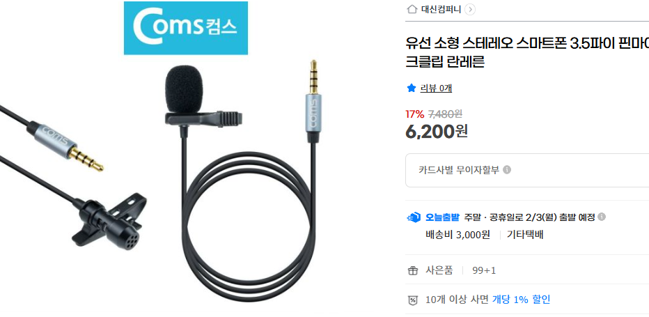 쿠팡에서 TRS 케이블 3.5로 검색하여 가장 싼 것으로 구매(제일 싼건 200원인데 너무 싼건 품질이 의심스러워서 금도금 되어있는 920원짜리로 구매)