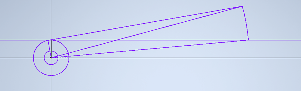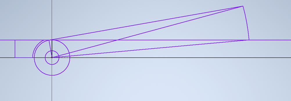 두 번째 조건을 만족하기 위해서, 위에서 그린 원호와 빗변을 공유하는 직각삼각형을 추가했다. 이렇게 하면 방지턱이 완전히 내려왔을 때 평지를 형성할 수 있다.