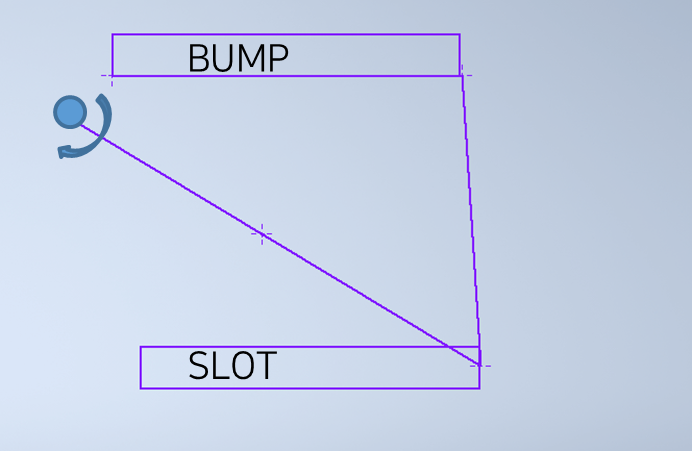 이때 메카니즘의 가동범위를 제한하지 않으면 방지턱이 너무 아래로 내려오면서 땅이 움푹 패이는 현상이 발생할 것이다. 그러면 차에게 충격이 가해질 수 있으므로 메카니즘의 가동범위를 제한하여야 했다. 이는 pin-in-slot joint를 이용해 해결하였다. Slot의 길이를 조정하면 메카니즘의 가동범위를 조정할 수 있다.